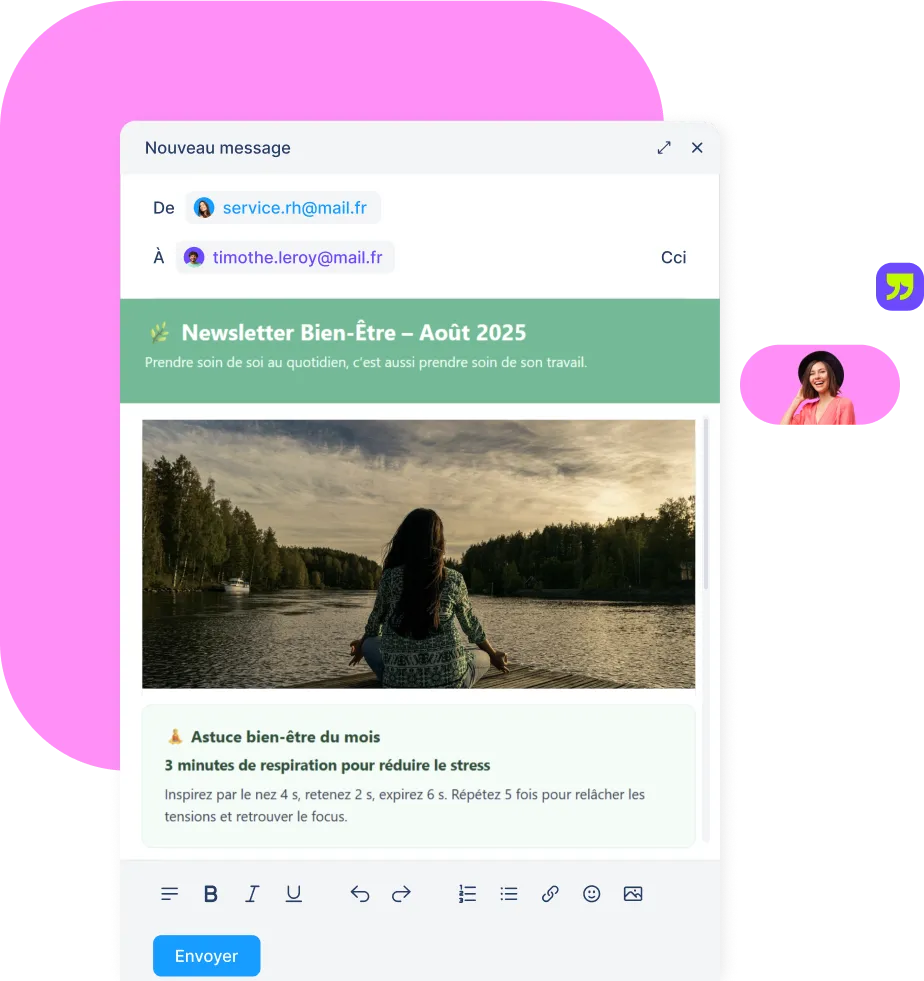 Pour donner vie à votre démarche, créez une newsletter bien-être régulière : un format attendu et valorisé par vos collaborateurs.