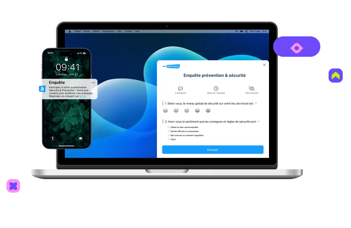 Grâce à We Advocacy, vos sondages deviennent des outils vivants, engageants et mesurables, au service de votre communication quotidienne.